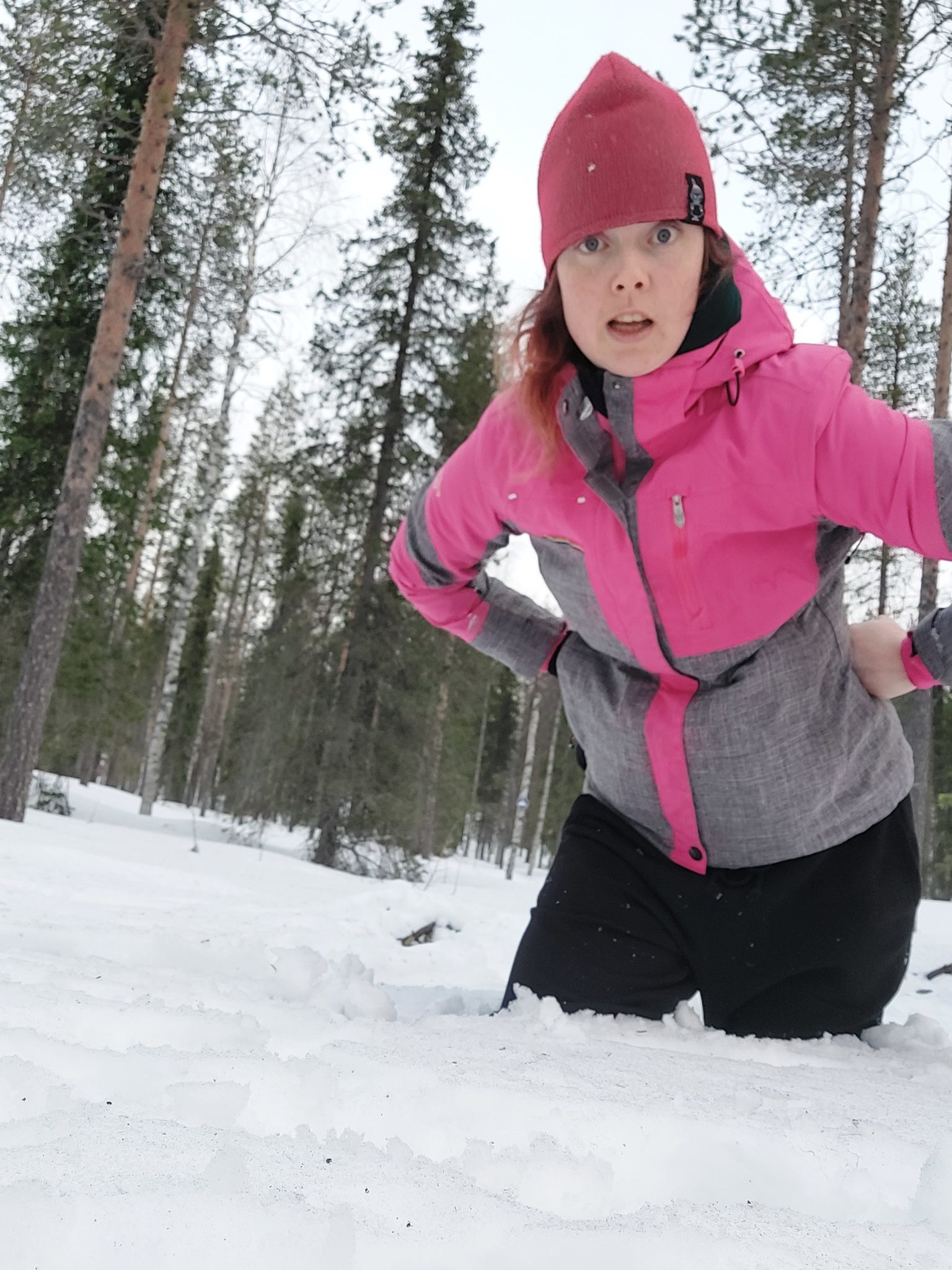 No joo, käytin tässä yhteydessä vaellus-sanaa, kun oltiin vaellusreitillä ja perusmetässä ei noita reittimerkkejä välttämättä löydy motivaattoriksi. Kahdet lumikengät meillä onkin. Ensi kerralla täytyy ottaa mukaan vähintäänkin siksi, että on helpompi säntäillä hangilla pikkuväen perässä ?