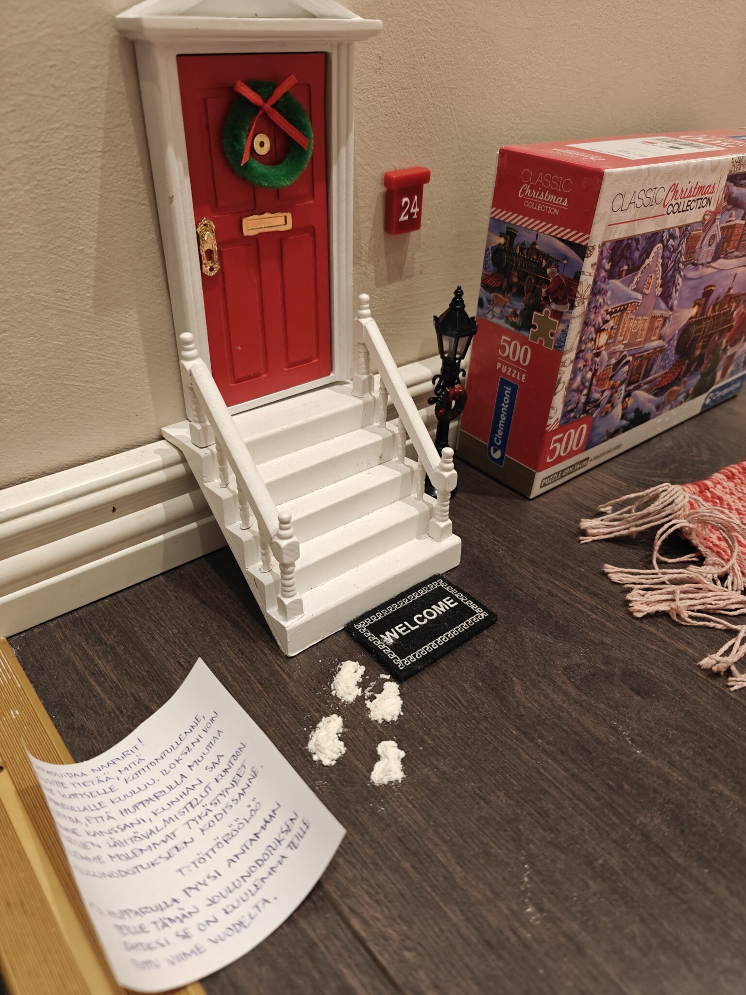 Meille muutti kaksi kotitonttua. Ne olivat kaivaneet myös perinteisen joulupalapelimme esiin