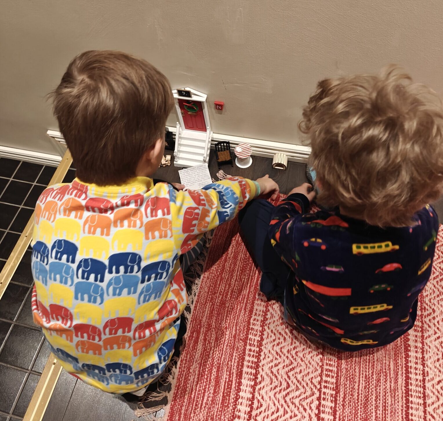 Tontut muuttivat meille jo marraskuun lopussa. Asukeiksemme saimme kaksi edellisvuosilta tuttua kotitonttua, Töttöröölöön ja Hupparullan. Kävi nimittäin ilmi, että lapsemme muistavat menneiden vuosien tontut nimiä ja kirjeitä myöten hämmästyttävän hyvin – ja juuri näitä kahta alivuokralaista he toivoivat luoksemme uudemman kerran.