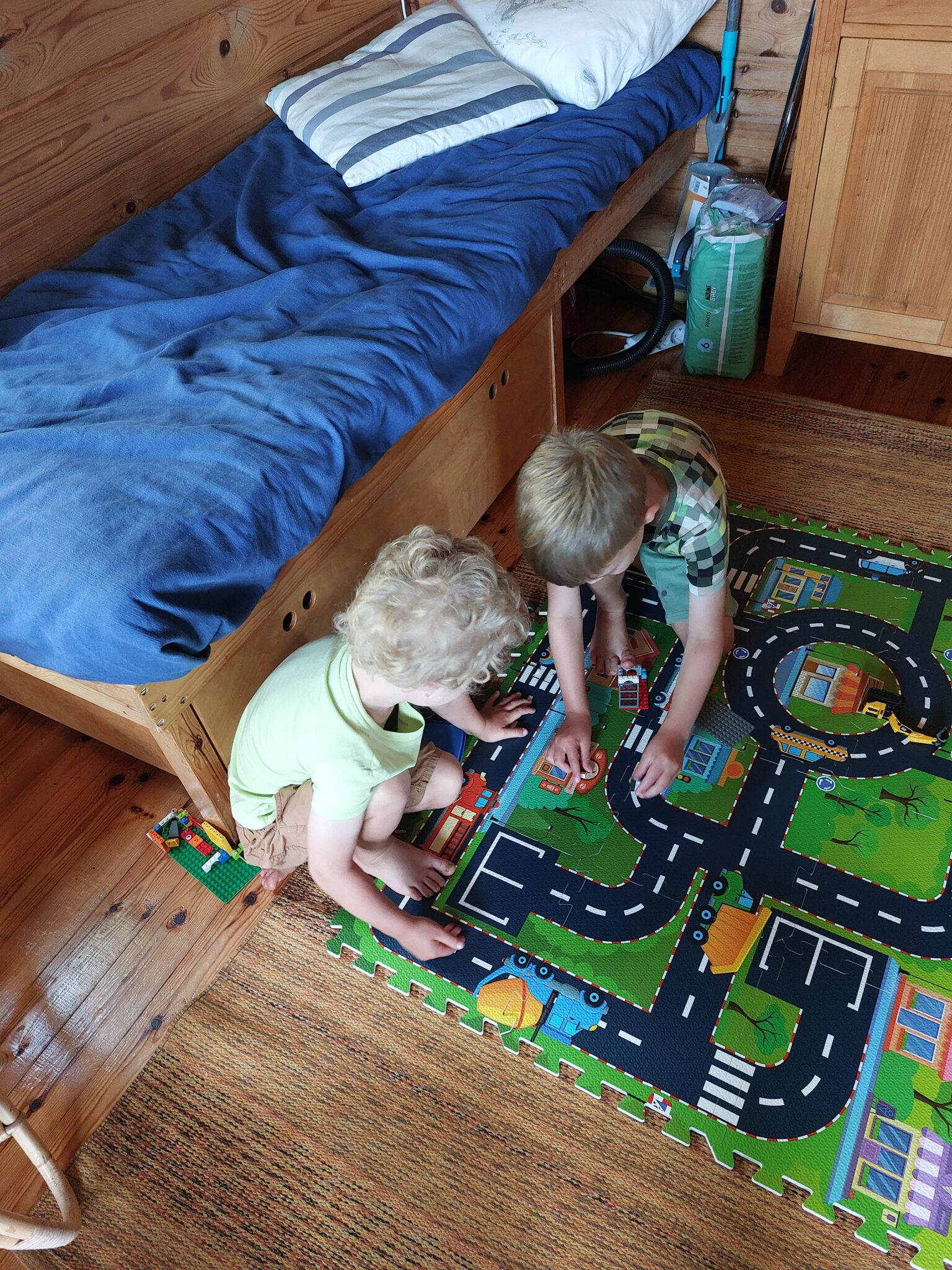 Kesäaamujen luksuksena saimme miehen kanssa myös nauttia aamukahvit Hesarin kera lasten leikkiessä hienosti kahdestaan. Loman loppua kohden meno tosin muuttui hieman riitaherkemmäksi, mikä lienee merkki siitä, että kukin sai nauttia perheenjäsenten seurasta lomalla riittämiin. Oli hienoa seurata vierestä, miten veljekset kuljettivat leikkejä eteenpäin vuorovedoin ehdotellen ja uutta keksien. Kesän hittileikeiksi taisivat nousta puro- ja patoleikit sekä legoista kyhätyt, itse suunnitellut menopelit.
