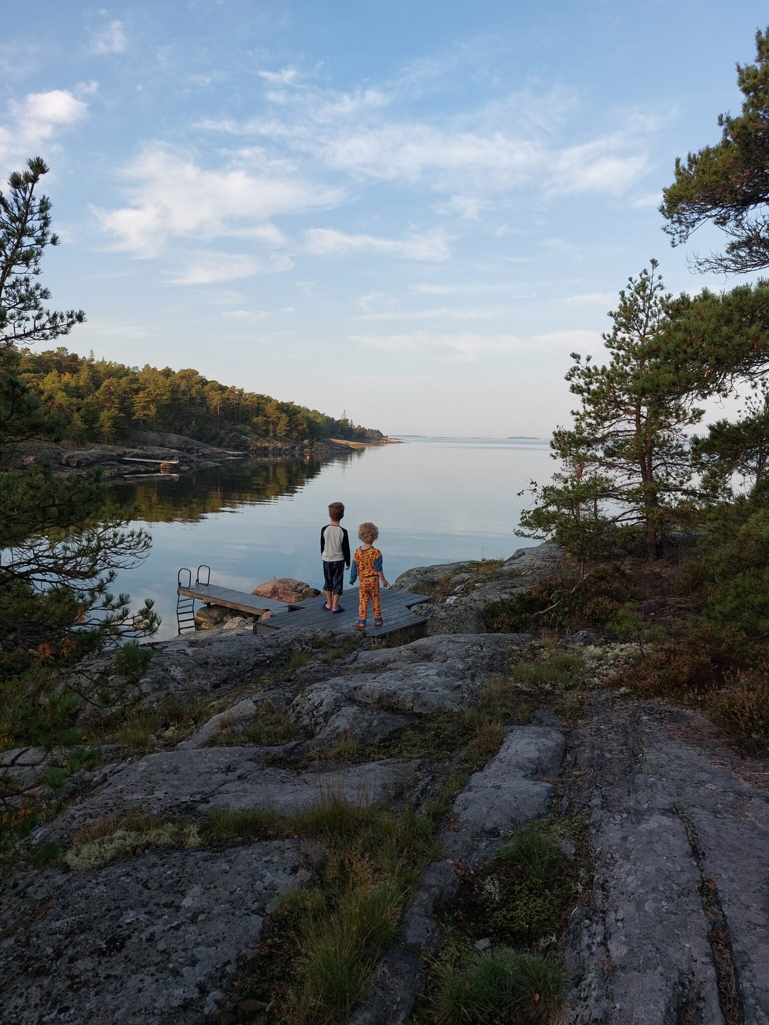 Olen jo aiempina kesinä kirjoitellut tänne juttuja ulkosaariston mökiltämme. Linkit vanhoihin juttuihin löydät tämän tekstin lopusta, mutta alkuun pääset myös TÄÄLTÄ. Heti esikoisen synnyttyä oli selvää, että pyrkisimme kasvattamaan lapsistamme ”saariston lapsia” ja totuttamaan heidät ulkosaariston eloon pienestä pitäen. Yhden lapsen kanssa se oli vielä suhteellisen helppoa, mutta myöhemmin kun soutuveneen kyytiin oli ahdettu vilkas taapero, vastasyntynyt, tarvittavat vauvavarusteet, mereen hyppivä koira, mökille selviytyminen vaatikin jo vähän enemmän sinnikkyyttä. Matkaa kun taitetaan ensin autolla, sitten tunnin verran yhteysaluksella, sen jälkeen veneellä ja lopuksi vielä kallioita ylös kivuten – joskus aallokkoisessa kaatosateessa, joskus tyynessä auringonpaisteessa. (Vauvavuosiin osui kummallisen paljon noita ensimmäisiä.) Mutta mökille selvittyämme olemme aina todenneet matkan olevan vaivan väärti: Saaressa saa olla irrallaan arjesta, kaukana kaikesta, läsnä ja luonnon äärellä.