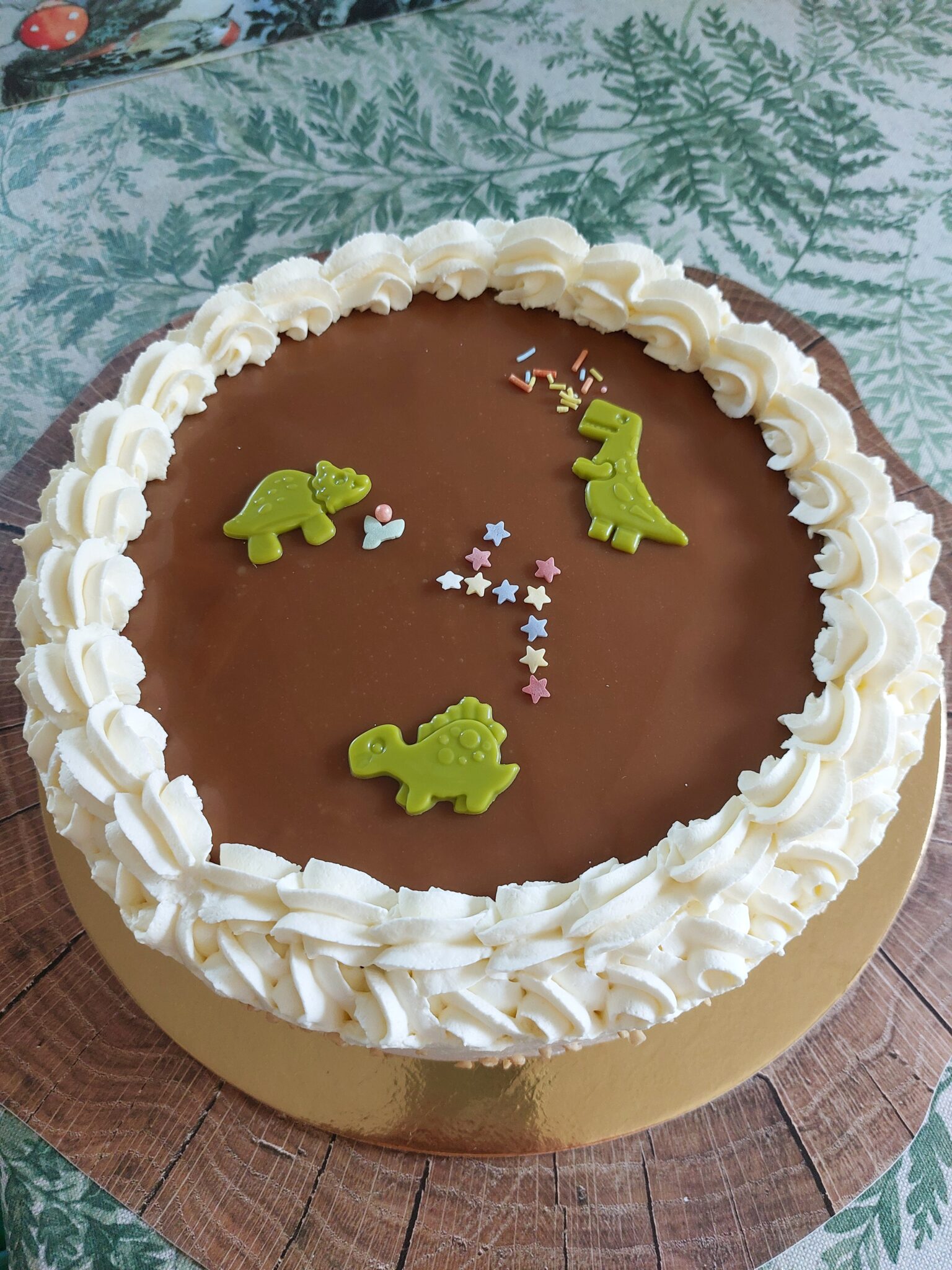 Vaikkei kakku ollutkaan kymmenkerroksinen, kelpasi se dinoilla ja strösselillä höystettynä