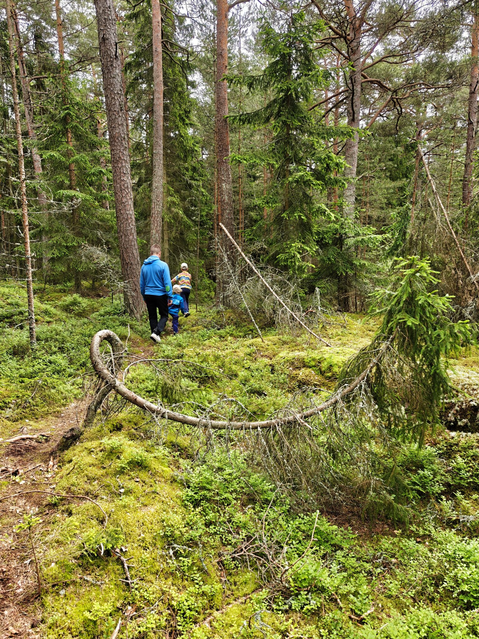 Luonnossa liikkumisessa on monia etuja. Ensinnäkin, metsät ja merenrannat tarjoavat upeita temmellyskenttiä, joilla vilkasluontoiset lapsemme saavat purettua virtavarantojaan. Ne myös ruokkivat mielikuvitusta ja houkuttelevat keksimään monenlaisia leikkejä. Paluumatkalla kuljen esikoisemme kanssa parin kilometrin matkan tien sijaan kivillä ja juurakoilla pomppien, sillä maa on muuttunut laavaksi. Se käy treenistä aikuisellekin!