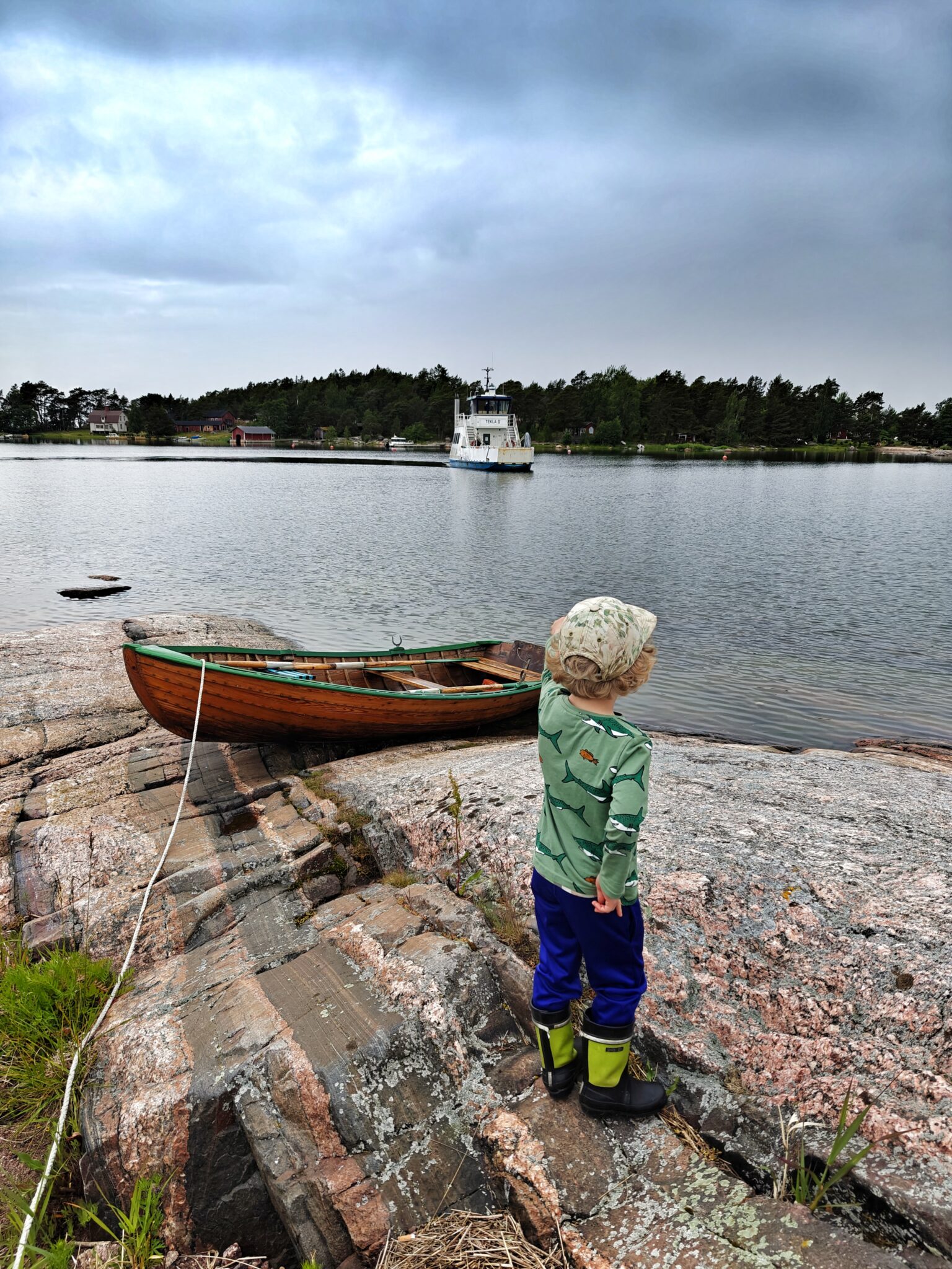Seitsenvuotias esikoisemme on tänä kesänä alkanut harjoitella rantautumistaitoja. Nykyään hän on se, joka yleensä hyppää ensimmäisenä kyydistä ja kiskoo muut rantaan tai työntää muut vesille ja loikkaa viimeisenä mukaan veneeseen. Se helpottaa paljon mökkimatkamme seuraavaa vaihetta: saapumista mökkisaarelle.